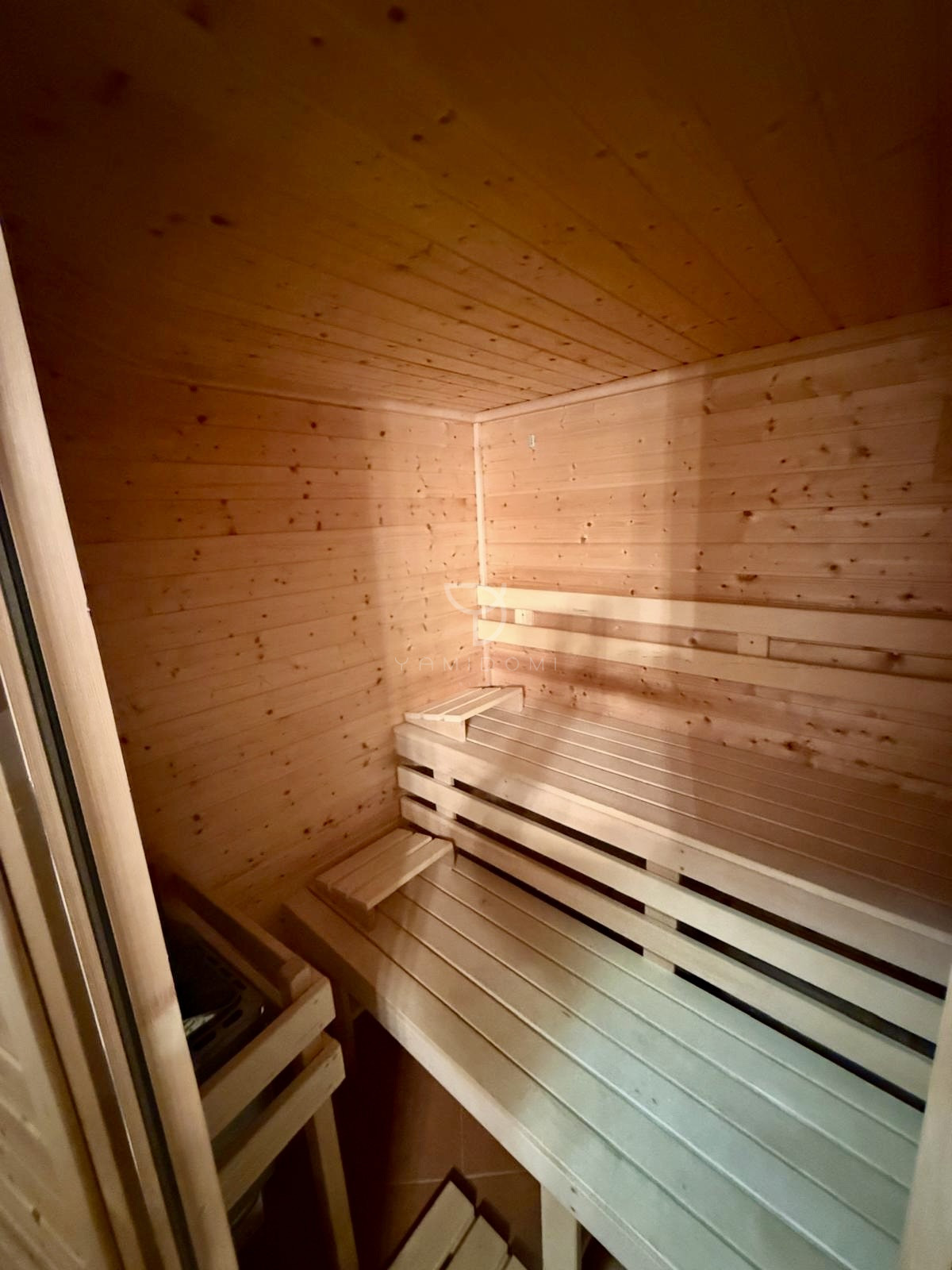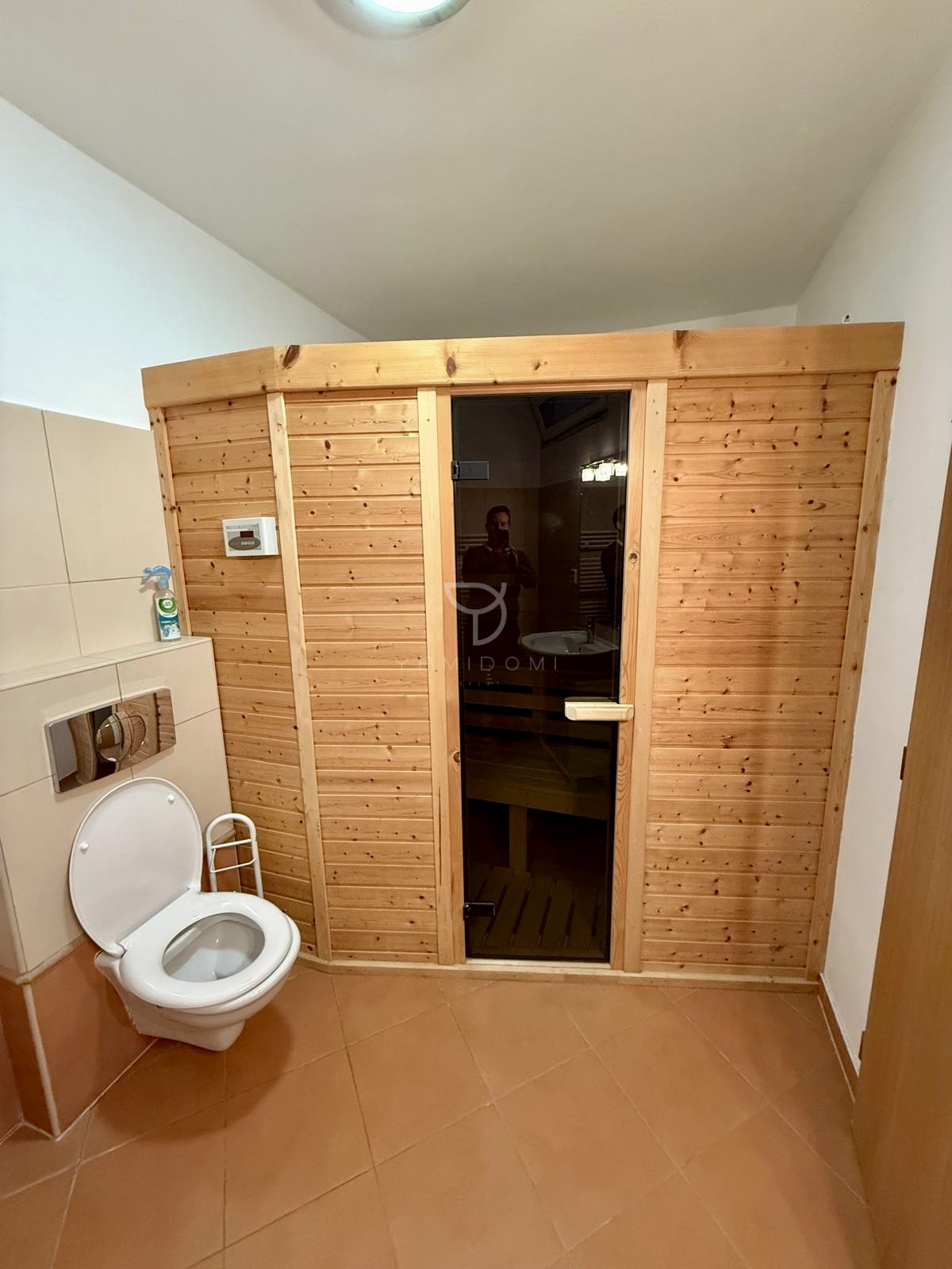 Dispozične pozostáva z veľkej obývacej izby s krbom a priamym vstupom na terasu, priestrannej kuchyne spojenej s jedálenskou časťou, troch nepriechodných spální, dvoch kúpeľní (1× vaňa, 1× sprchový kút), dvoch toaliet, komory a úložného priestoru v podkroví. Príjemným benefitom domu je vlastná SAUNA, ktorá prináša komfort wellnesu priamo v domácom pohodlí. Súčasťou vybavenia je alarm, samostatný nový plynový kotol, ústredné kúrenie a automatická vonkajšia závlaha. Záhrada orientovaná na juhozápad a veľká terasa poskytujú ideálne miesto na rodinný oddych.