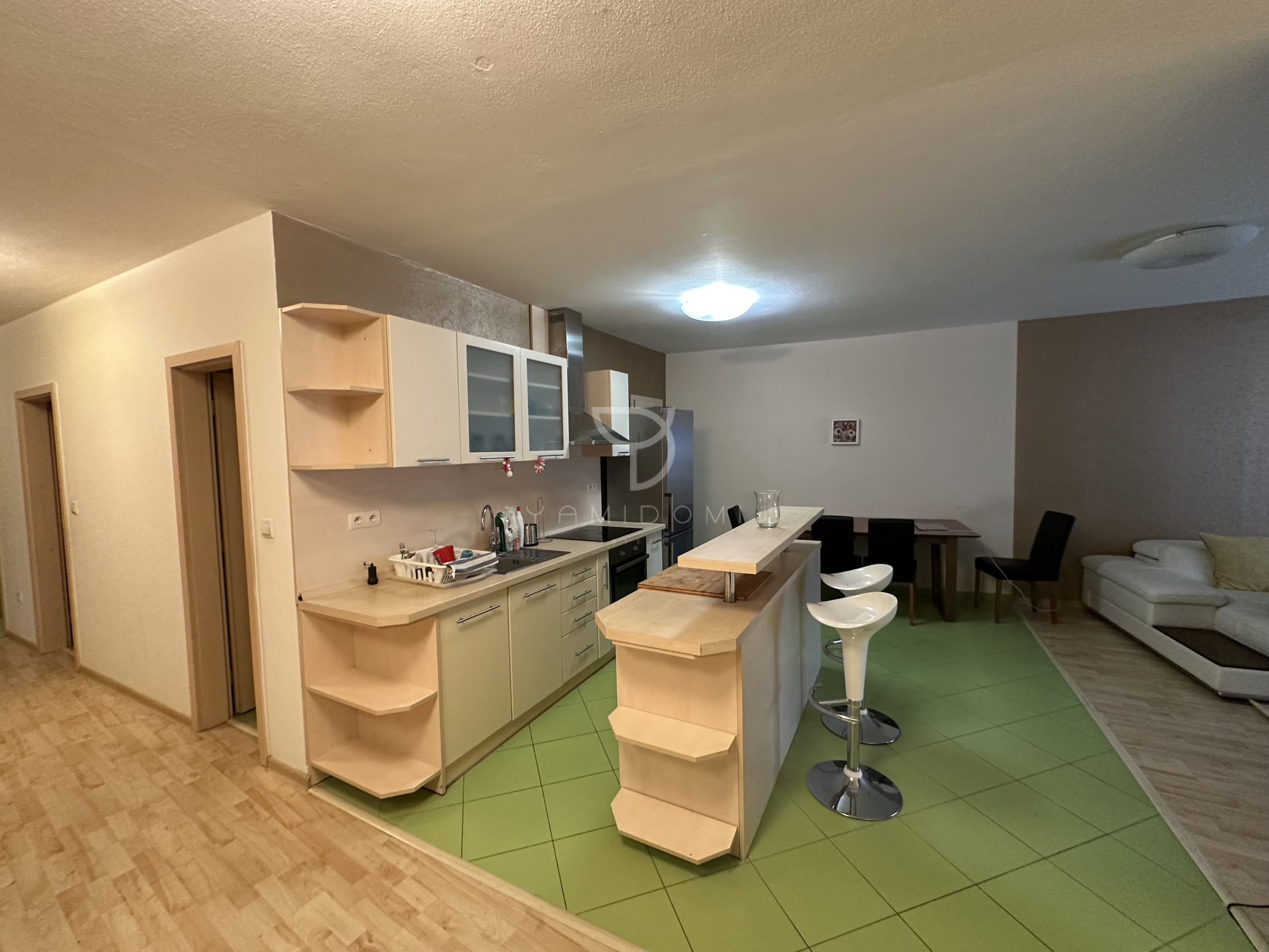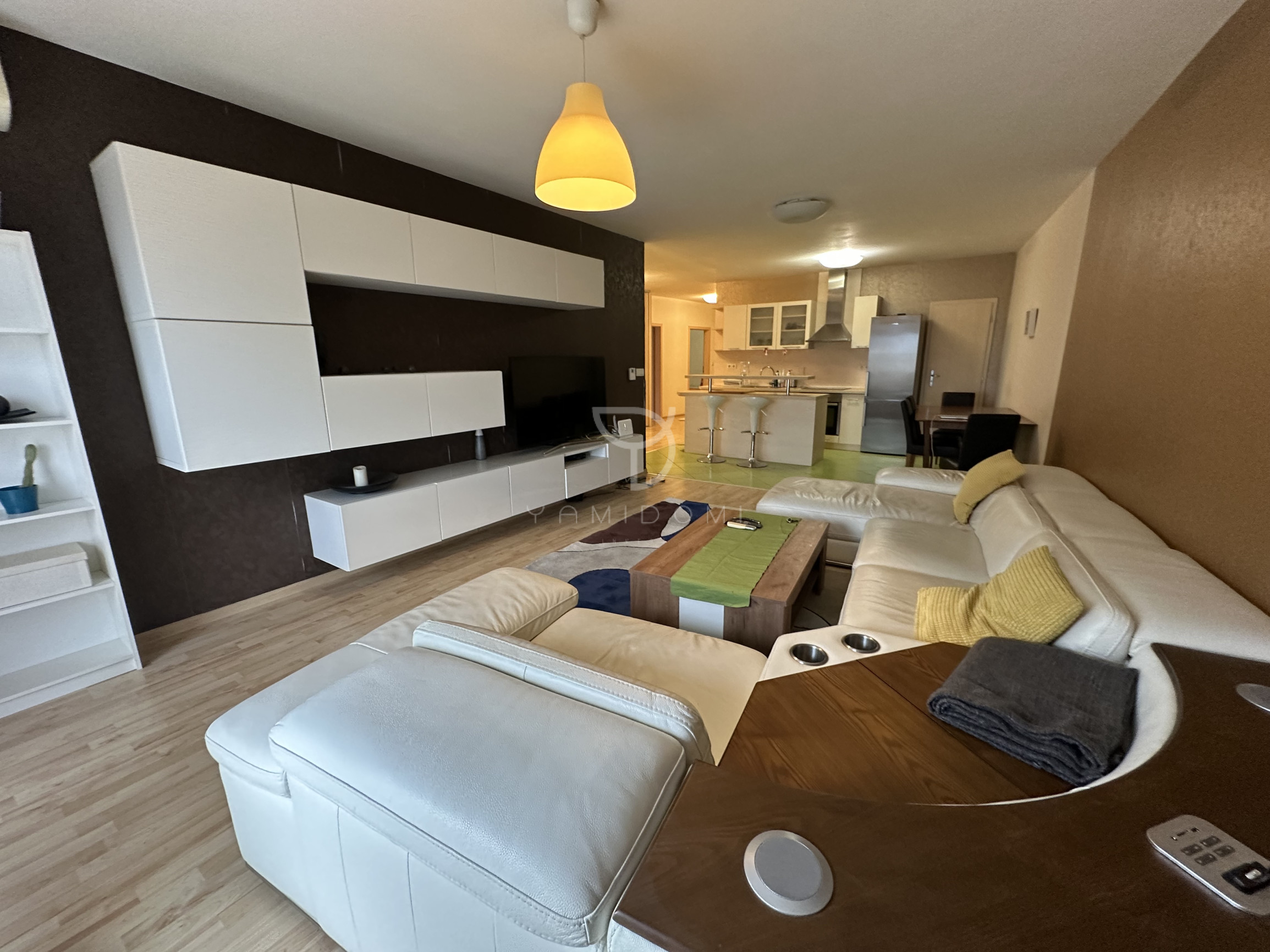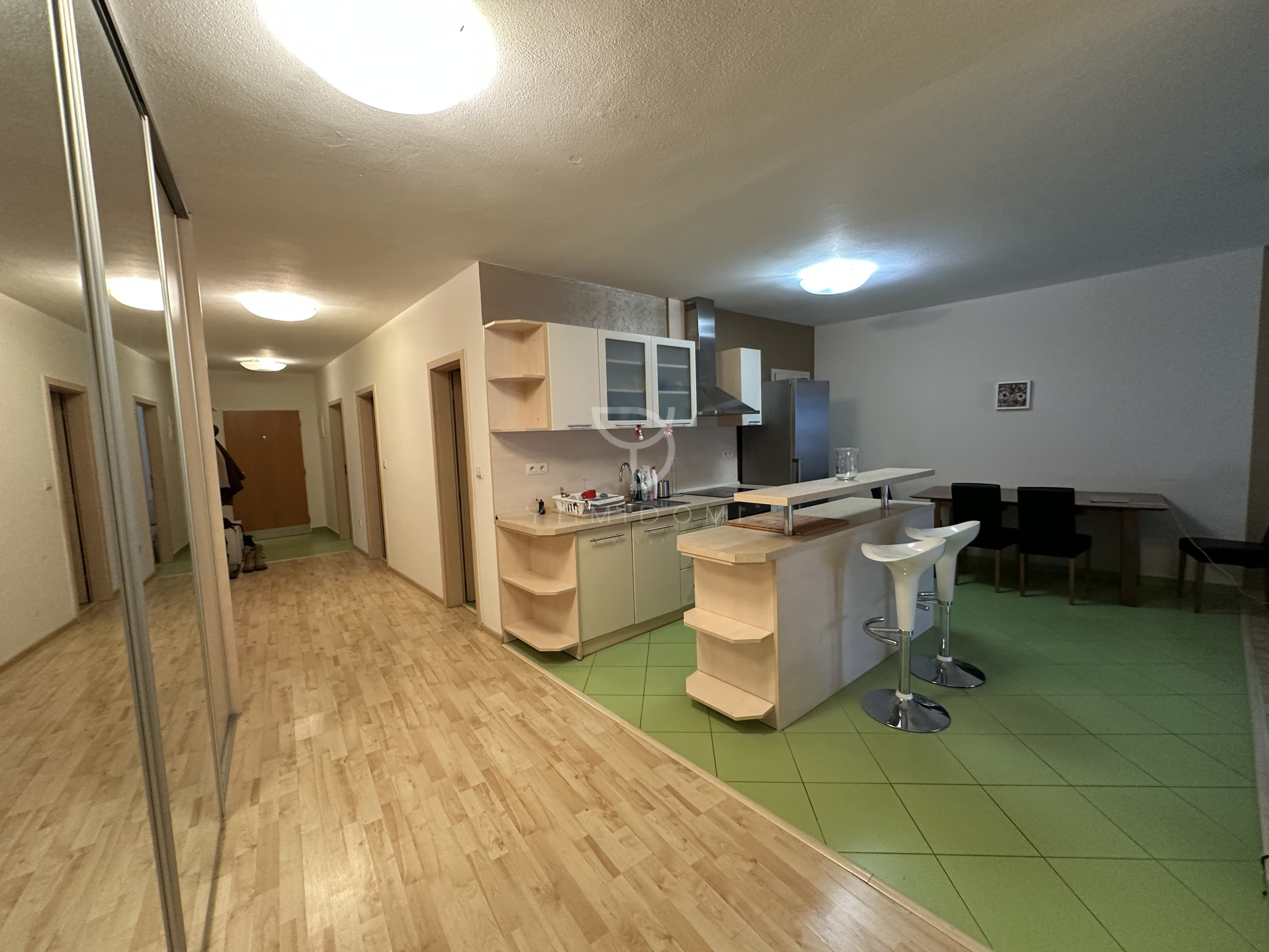 Byt poskytuje dostatok priestoru a veľmi praktické dispozičné riešenie s množstvom úložného priestoru, ktoré je ideálne najmä pre rodiny s deťmi alebo pár, ktorý potrebuje komfortné zázemie na prácu z domu.