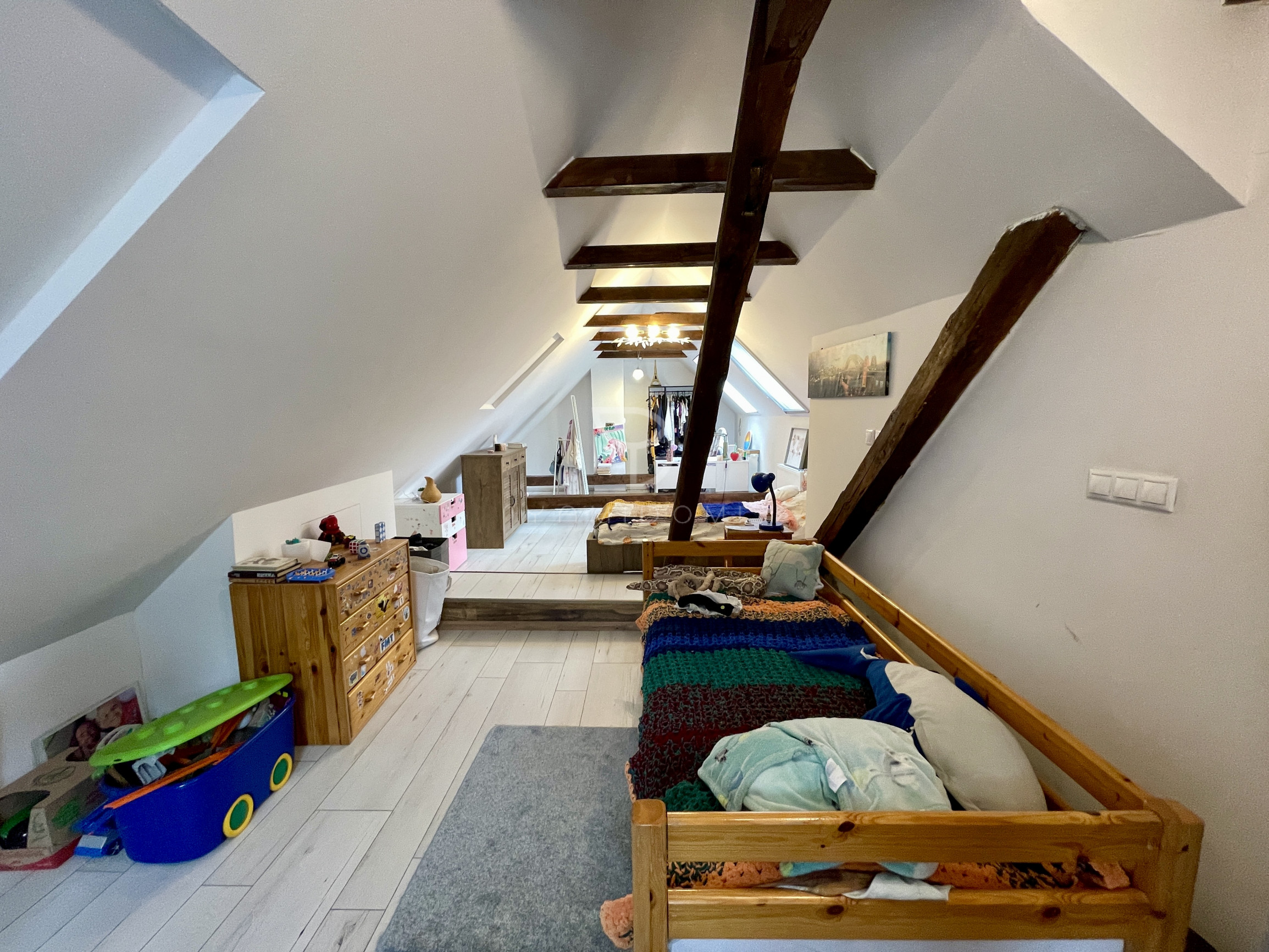 • Podkrovie: detská izba,spálňa so samostatne stojacou vaňou, sociálne zázemie a odkladací priestor