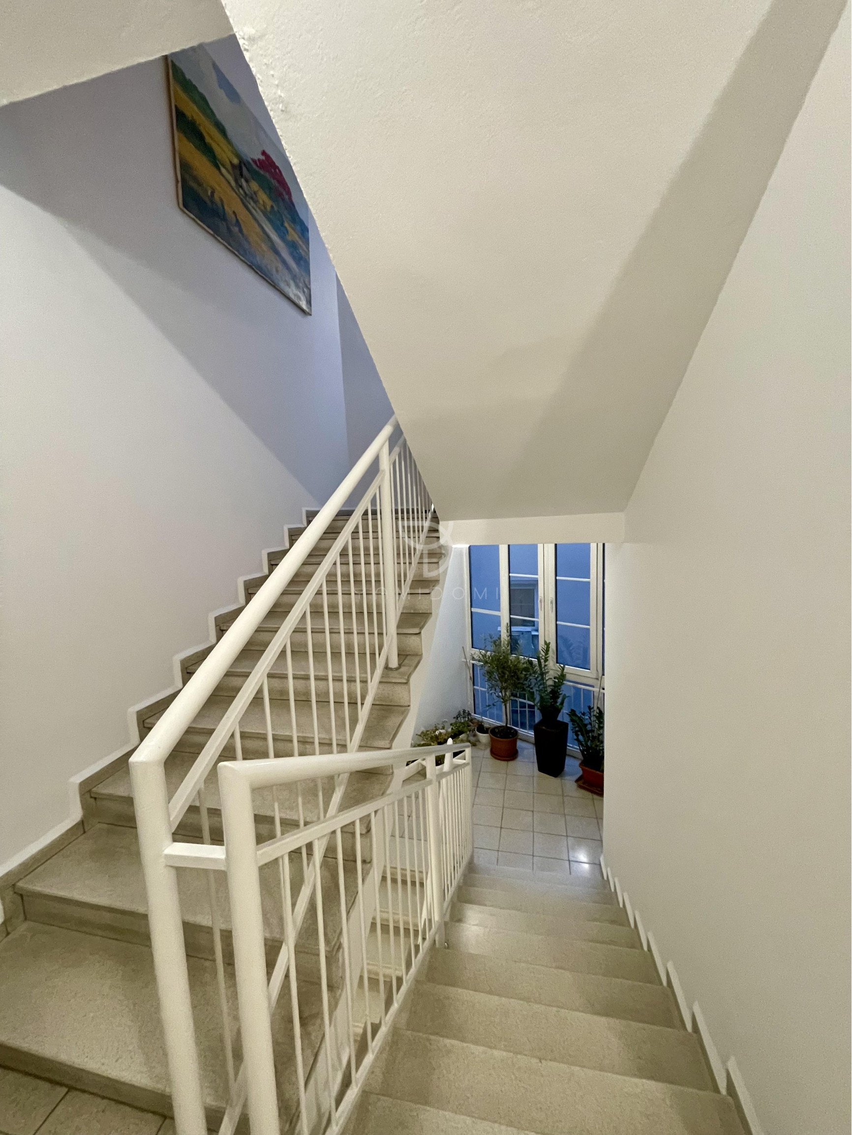 The apartment has an area of 90 m2 + a balcony of 7 m2 and is located on the 3rd floor of a 4-story brick building.
