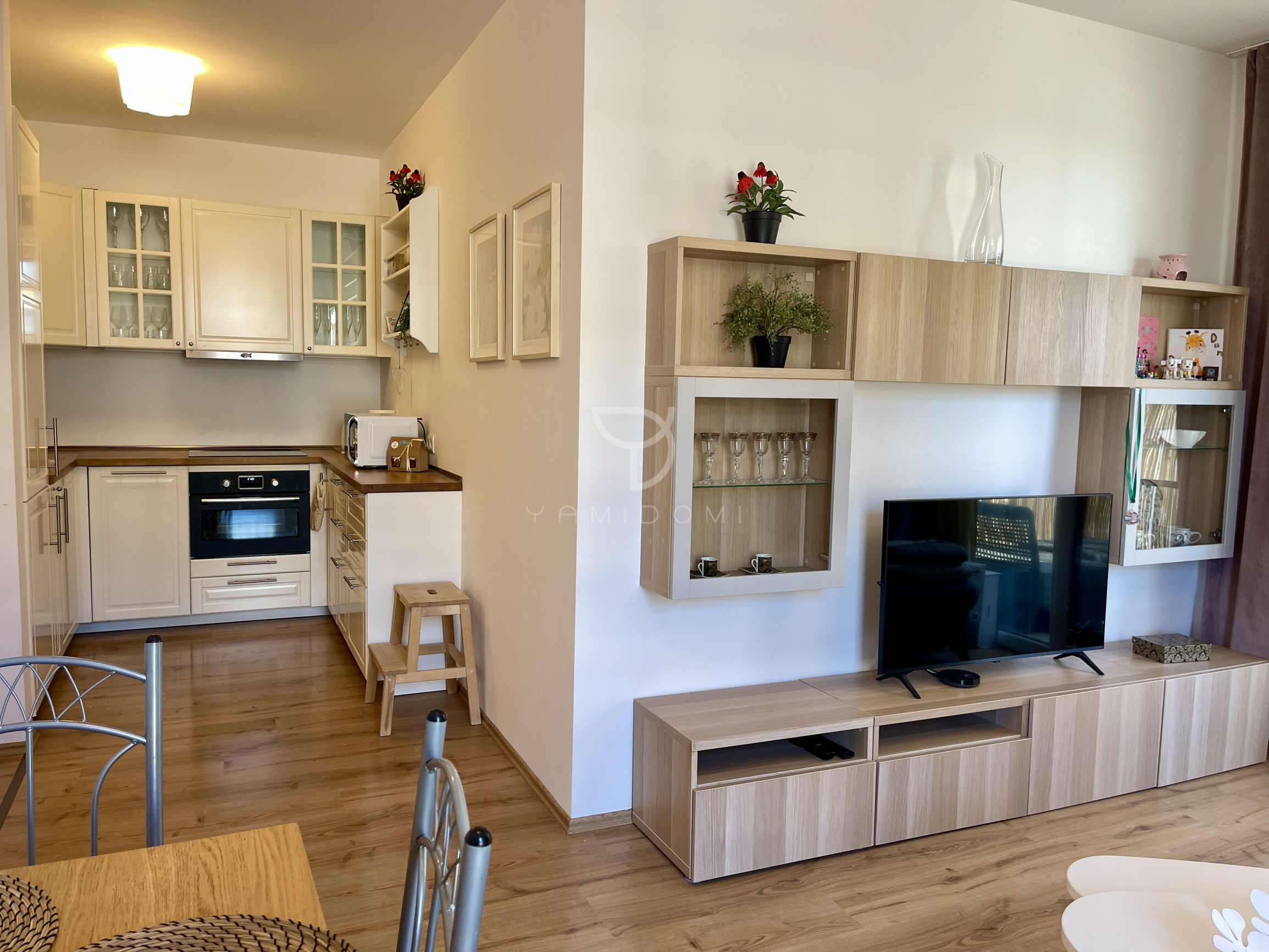 Pozostáva z 3 obytných miestností, kuchyne s otvorenou dispozíciou, spálne, izby, predsiene, chodby, kúpelne s vaňou a samostatnej toalety. Prístup na balkón z obývacej izby.