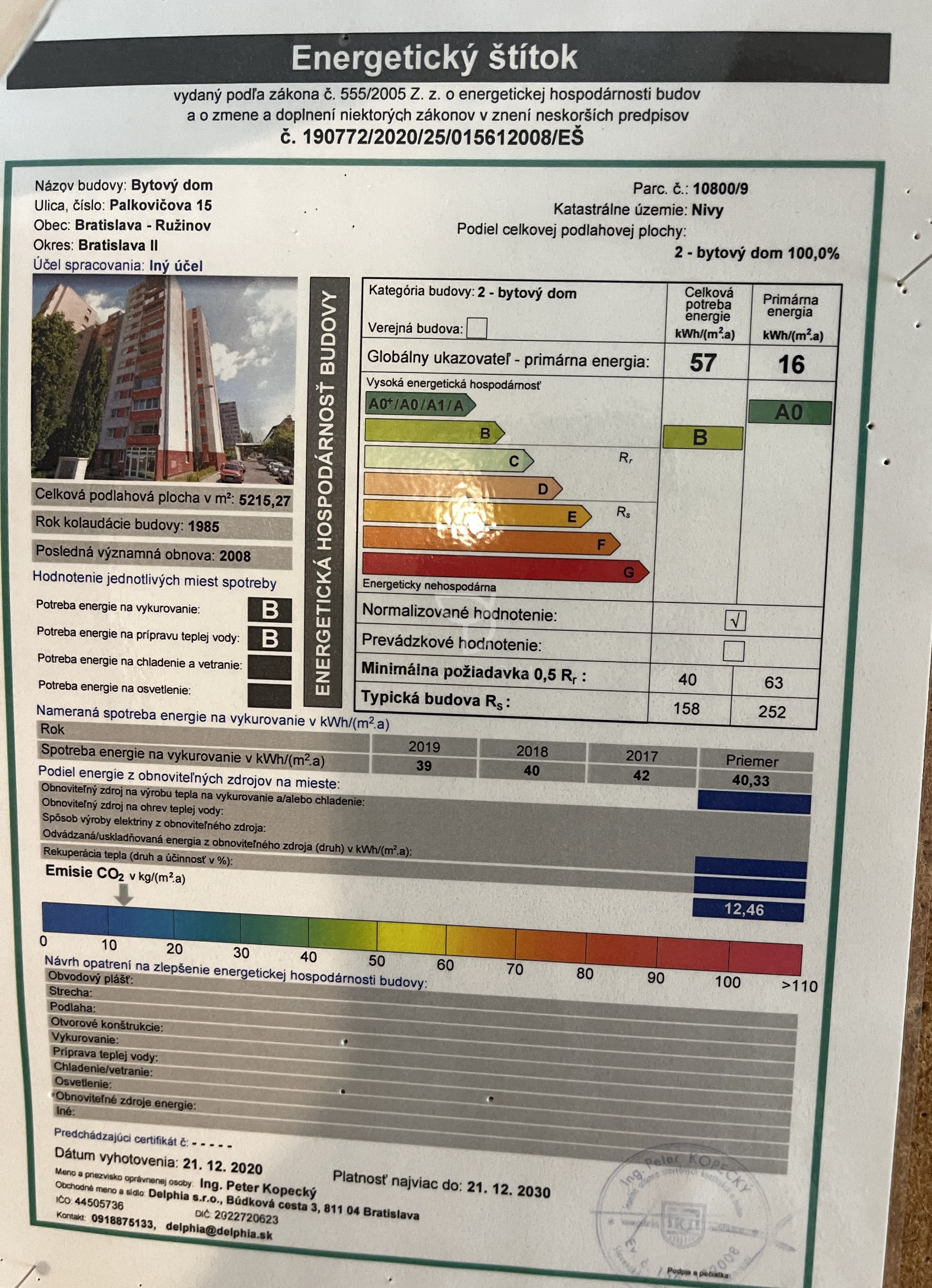 Výmera bytu: 67,52 m² + 6,99 m² lodžia a nachádza sa na 7. poschodí 12 poschodového panelového domu. Súčasťou bytu je aj pivničná kobka cca 1 m², ktorá sa nachádza na poschodí vedľa bytu.