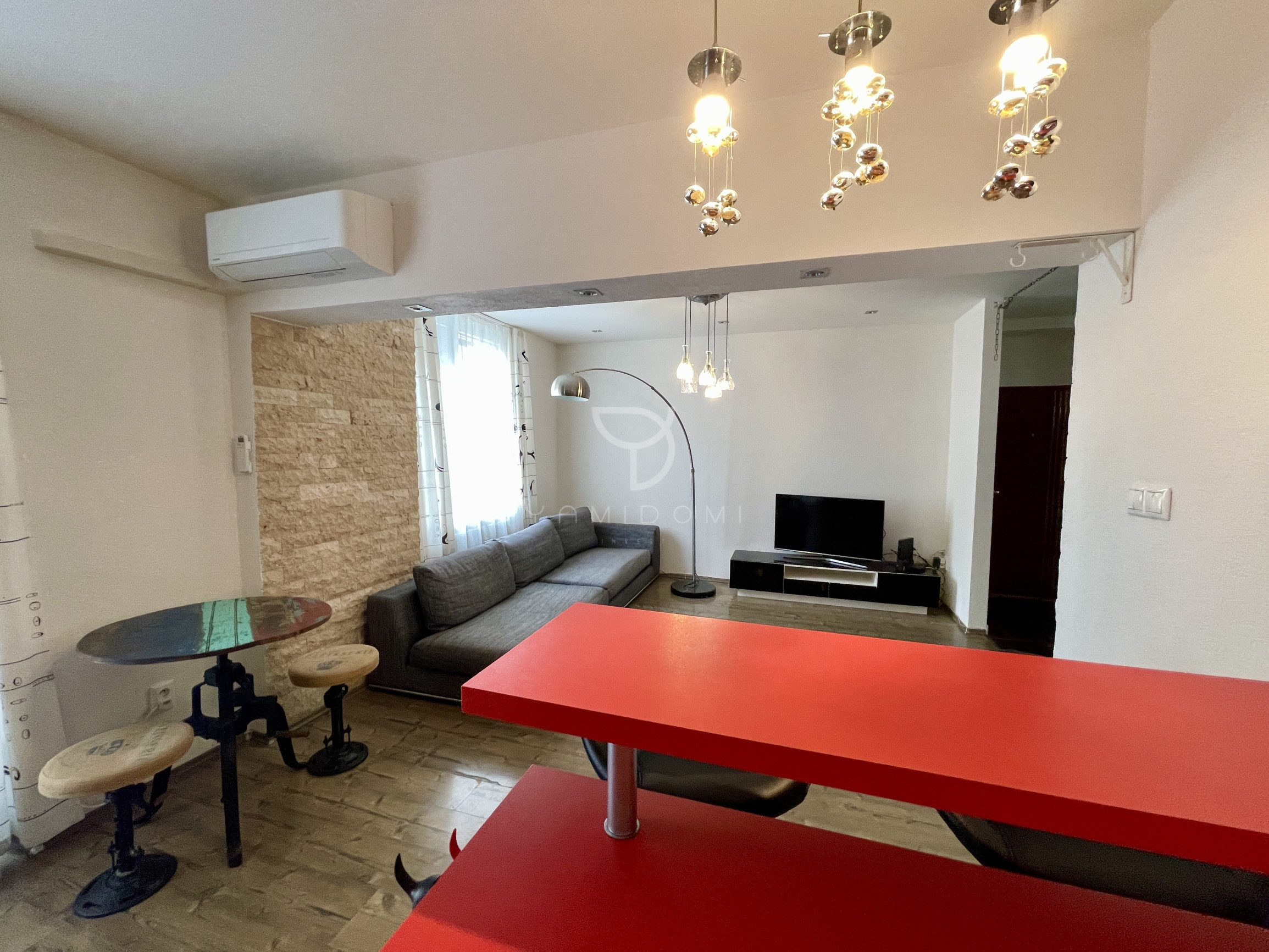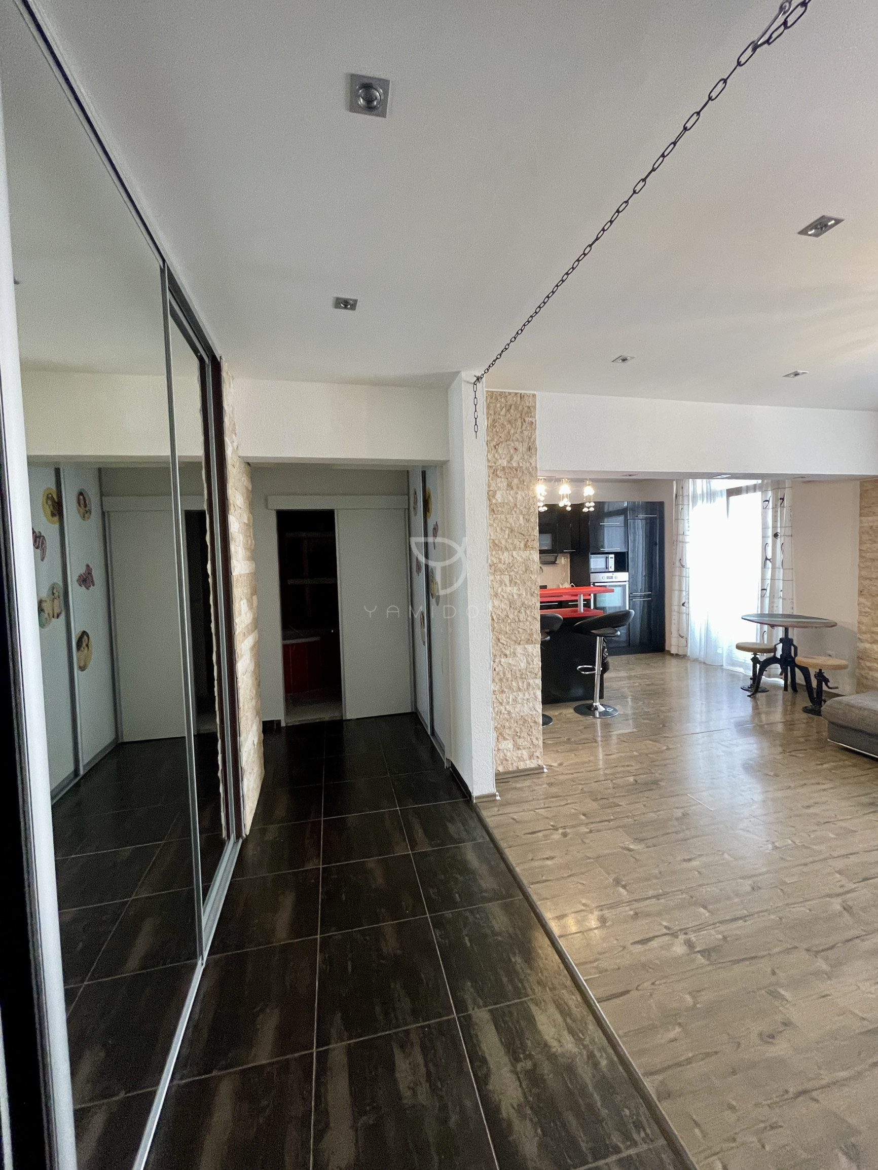 Pozostáva z 2 obytných miestností, kuchyne s otvorenou dispozíciou, spálne, chodby, spojenej kúpelne s vaňou a  toaletou. Byt sa ponúka zariadený a má dostatok úložného priestoru.