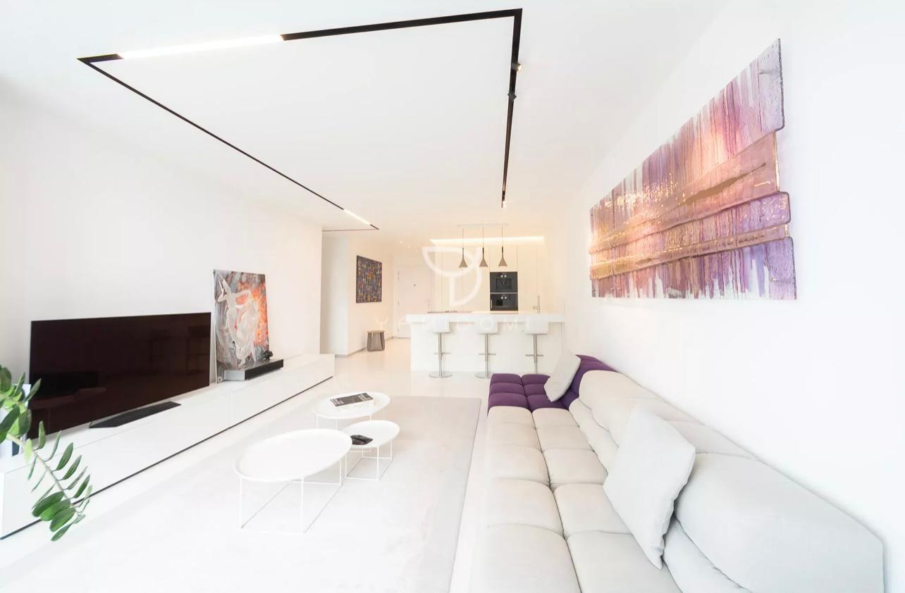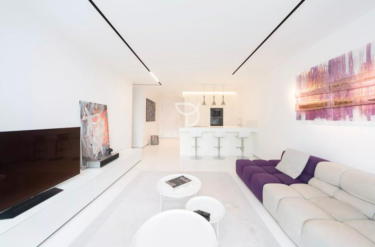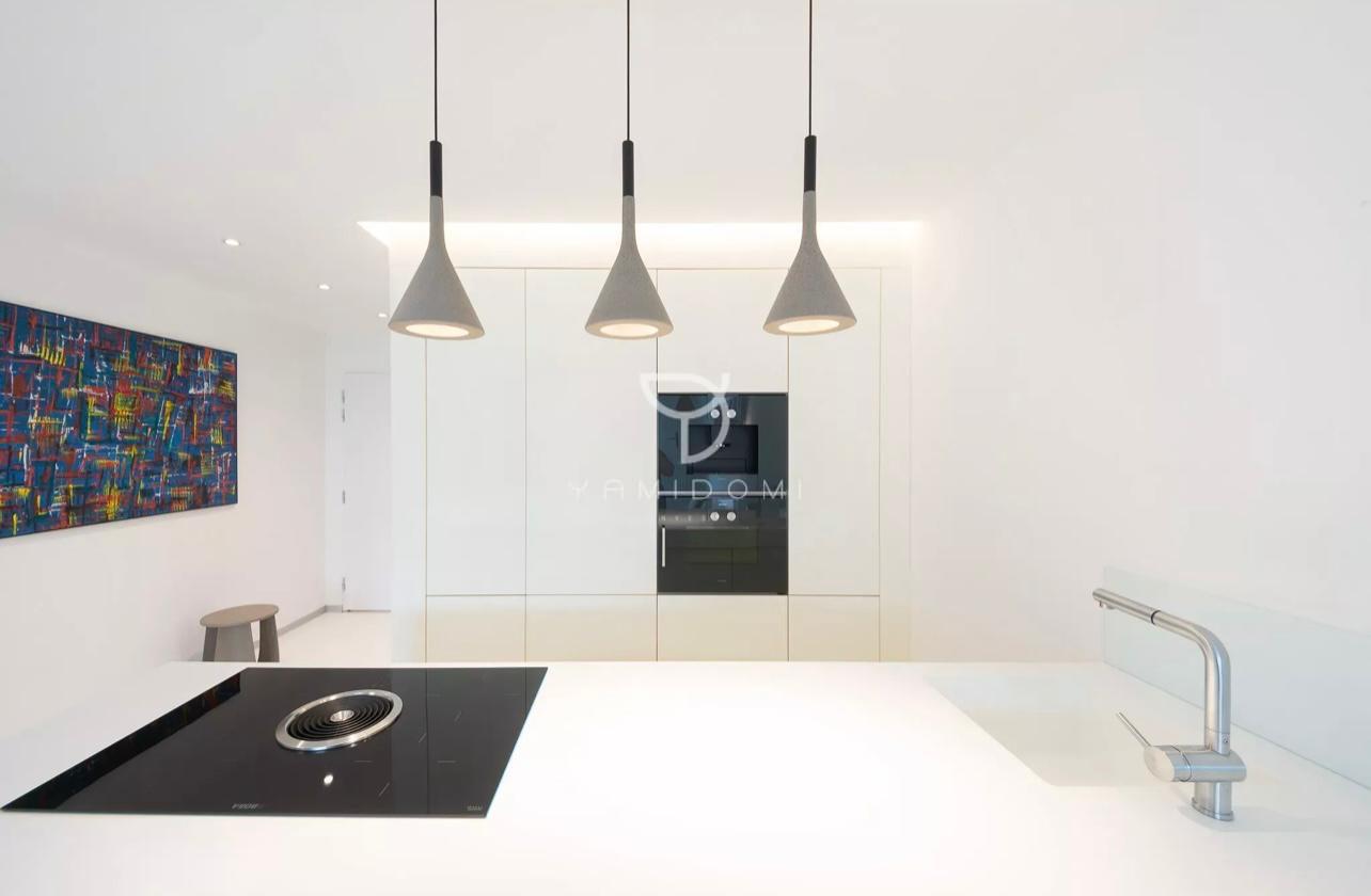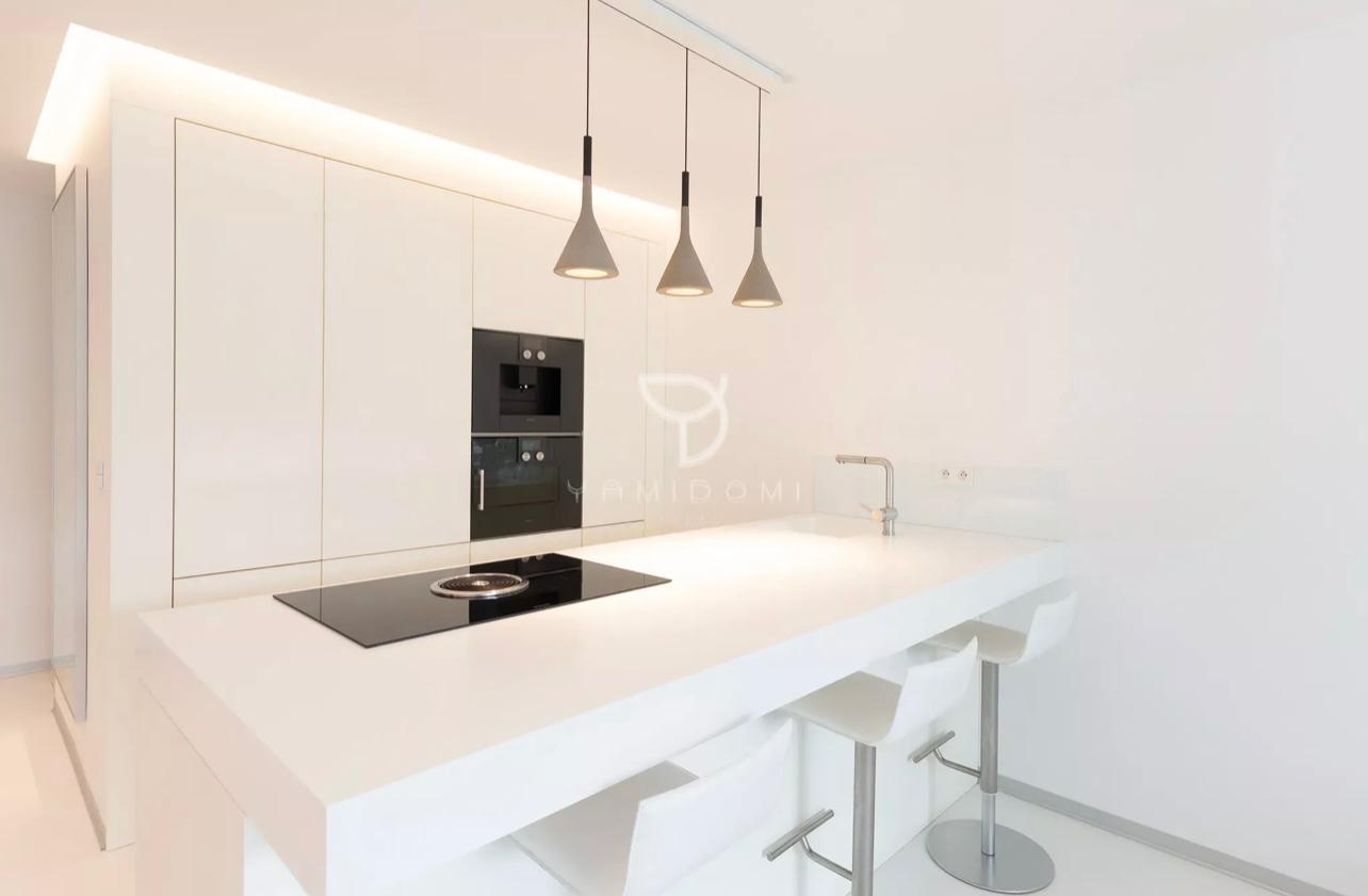 Moderné liate podlahy a bezfalcové interiérové dvere dotvárajú nadčasový interiér bytu vrátane dokonalého osvetlenia, ktorý vytvára príjemnú harmóniu. Čisté línie a citlivo farebne navrhnutý interiér je obohatený o umelecké diela Gordany TURUK.