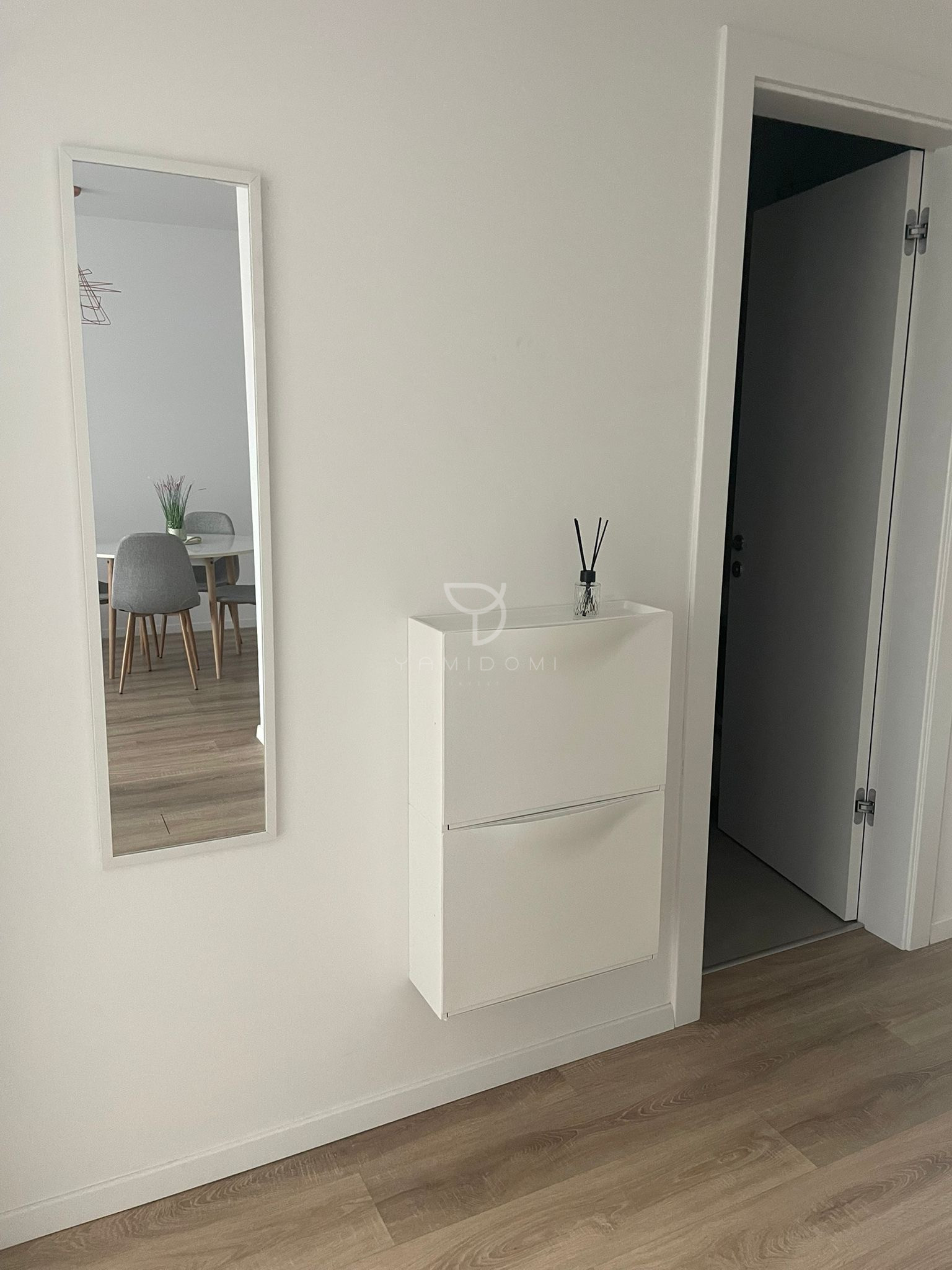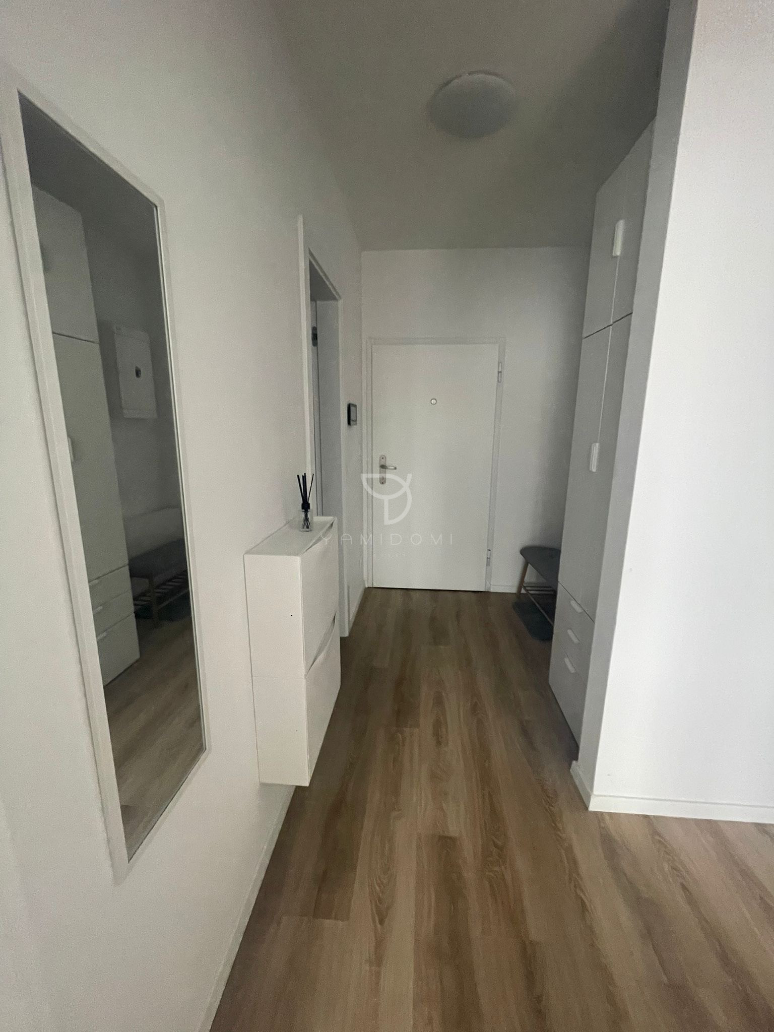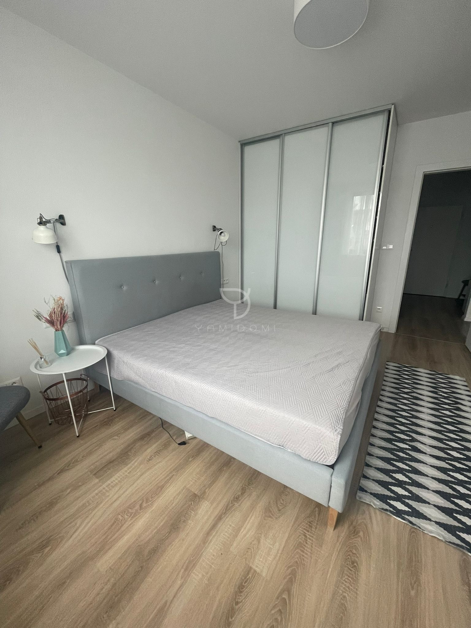 Samostatná spálňa je vybavená vstavanými šatníkovými skriňami. V byte sa nachádza aj komora, kúpeľňa spojená s WC a predsieň so vstavanou skriňou.