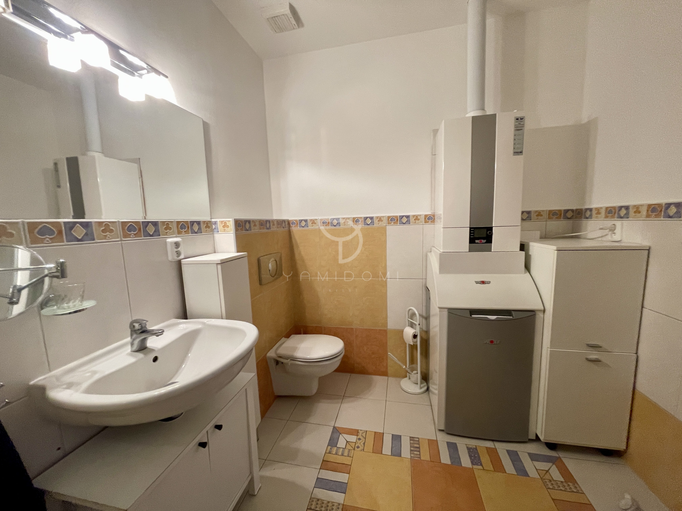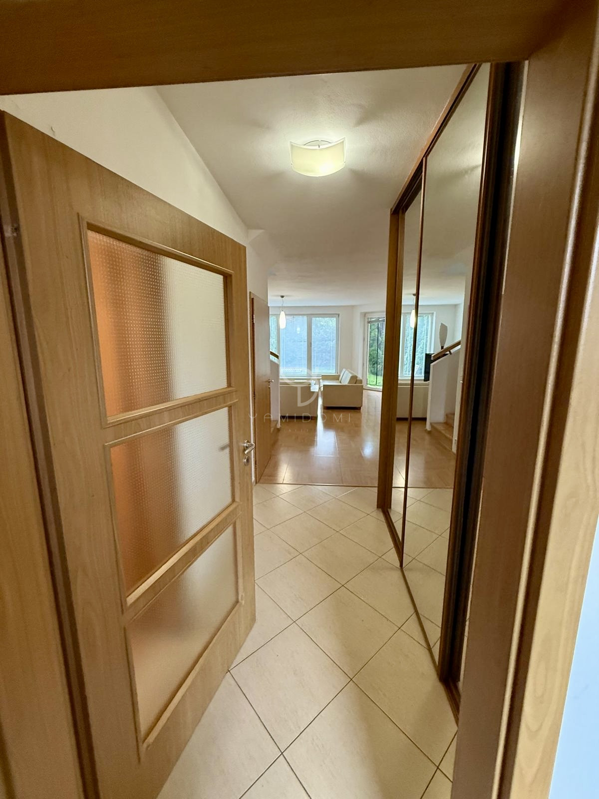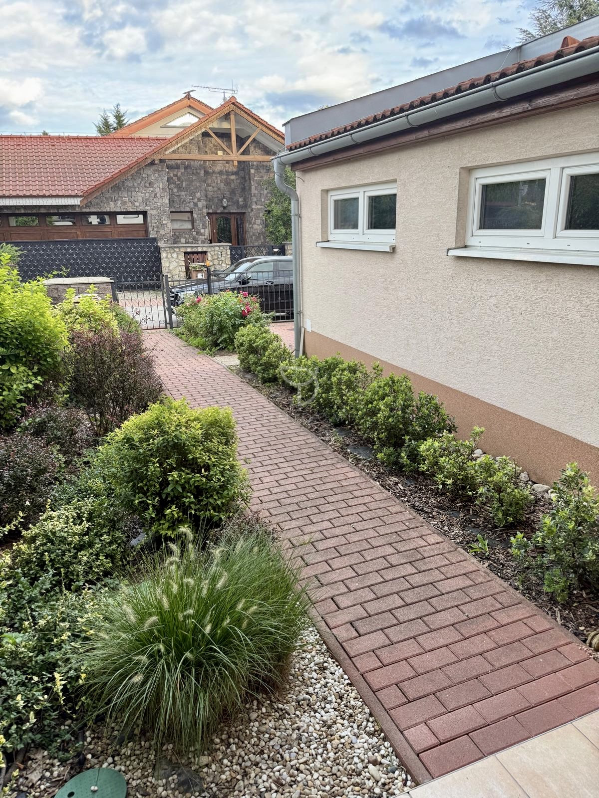 Dispozične pozostáva z veľkej obývacej izby s krbom a priamym vstupom na terasu, priestrannej kuchyne spojenej s jedálenskou časťou, troch nepriechodných spální, dvoch kúpeľní (1× vaňa, 2× sprchový kút), dvoch toaliet, komory a úložného priestoru v podkroví. Príjemným benefitom domu je vlastná SAUNA, ktorá prináša komfort wellnesu priamo v domácom pohodlí. Súčasťou vybavenia je alarm, samostatný nový plynový kotol, ústredné kúrenie a automatická vonkajšia závlaha. Záhrada orientovaná na juhozápad a veľká terasa poskytujú ideálne miesto na rodinný oddych.
