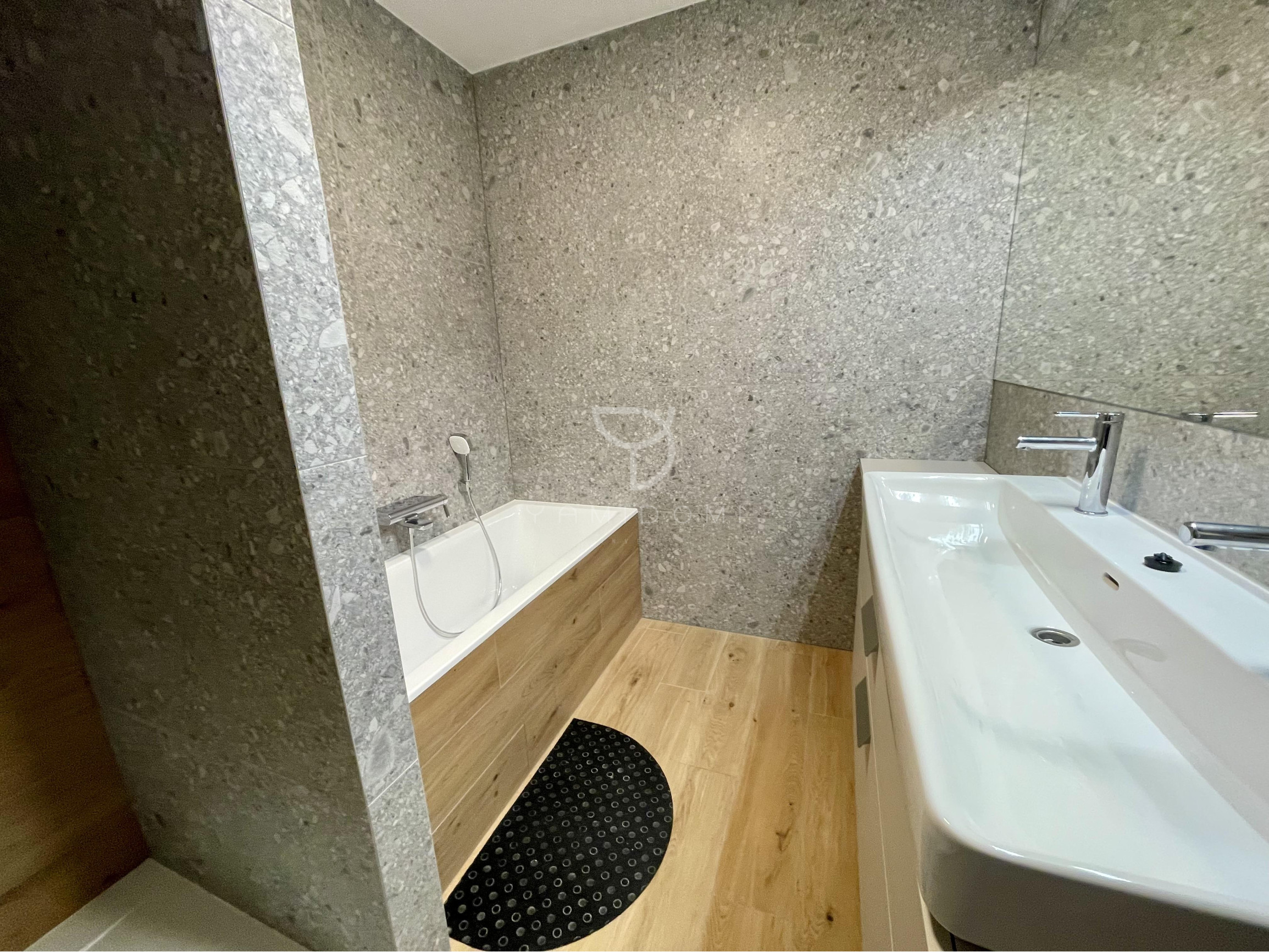 Dispozične pozostáva z predsiene, priestrannej a otvorenej obývacej izby spojenej s novou plne vybavenou kuchynskou linkou so spotrebičmi a jedálenskou časťou, 3 samostatných izieb, moderne novozrekoštruovanej kúpelne s vaňou a sprchovacím kútom a samostatnej toalety. K bytu prislúchajú 1 garážové a 1 vnútorné parkovacie státie.